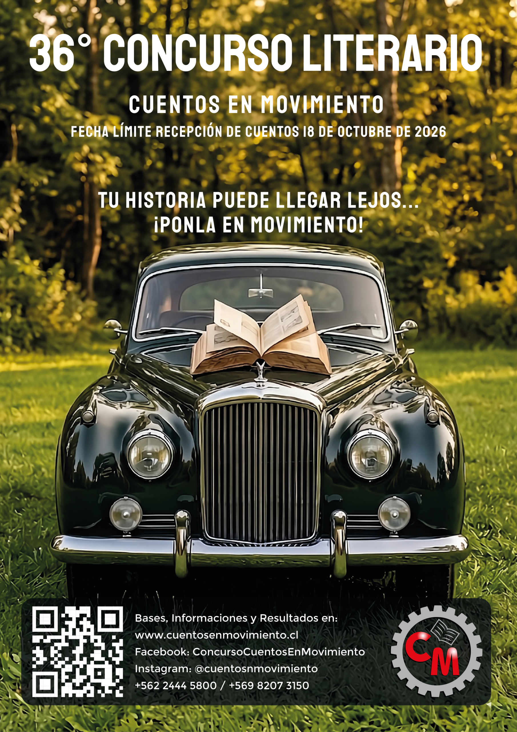 El viaje de las palabras comienza otra vez: hoy hacemos el lanzamiento oficial del 36° Concurso “Cuentos en Movimiento” Una oportunidad para dejar que tu historia encuentre su camino. Una instancia para impulsar la creatividad y reconocer el talento narrativo, si tienes una historia que contar, este es tu momento. Da rienda suelta a tu imaginación, inspira con tus palabras y forma parte de esta gran experiencia literaria que une creatividad, talento y emoción